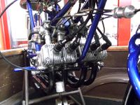 The engine was tried with a 10.5:1 compression ratio in the head and 8:1 in the crankcase, the unit did fired up and ran under its own power. A reported looking at the engine made a statement that " until development is completed and there has been an opportunity of a fairly prolonged track test, the ultimate potential of this neat and ingenious little unit will not be known". Unfortunately the engine was never put into a frame by the Fitz-Raby team.